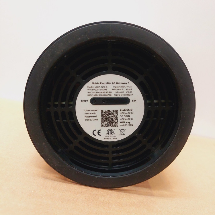 - Models of the Nokia FastMile 4G GatewayTable 7 describes the E-UTRA band and frequency support and the antennaconfiguration for the Nokia FastMile 4G Gateway.Table 7 Models of the Nokia FastMile 4G Gateway7.1.1 Label informationTable 8 describes the label information for the Nokia FastMile 4G Gateway.Table 8 Label information for the Nokia FastMile 4G GatewayModel E-UTRA band support and frequencies Antenna configuration